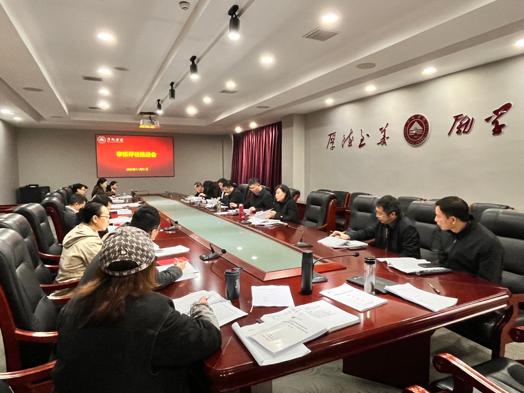 会上,各部门负责人汇报了审核评估第一轮支撑材料准备情况及今后打算。党委委员、统战部部长、教务处处长贺晓梅布置了自评报告撰写任务分工。高教研究与质量评估中心主任(发展规划处处长)易志文对自评报告撰写提出了具体要求。