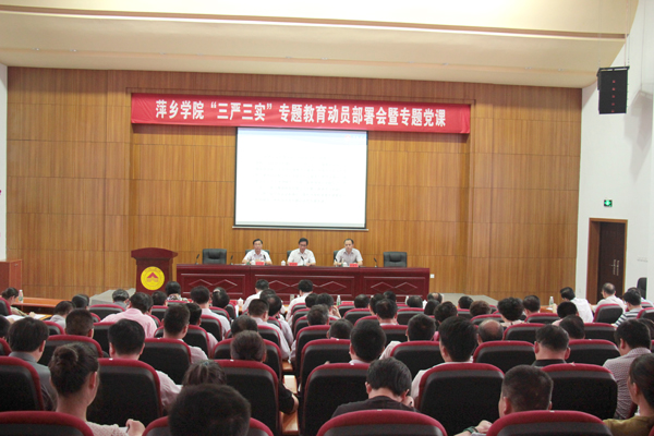 5月22日下午,我校在至善楼学术报告厅召开“三严三实”专题教育动员部署会暨党课报告会,传达学习中央、省委、市委有关文件精神,安排部署学校“三严三实”专题教育活动工作,并对全校中层以上干部及教师党员进行“三...