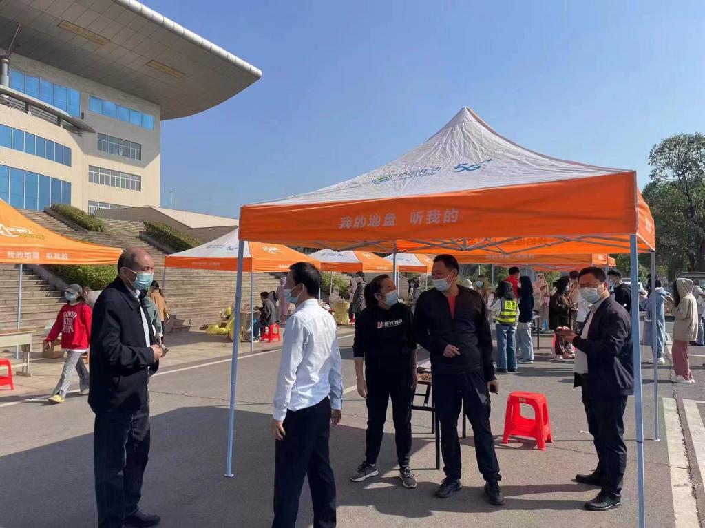 11月7日,我校继续开展全员核酸检测工作。校党委副书记、校长史焕平来到核酸采样点查看情况。党政办负责人陪同。