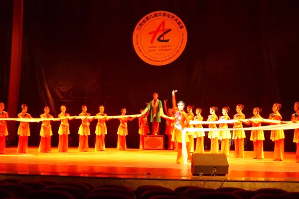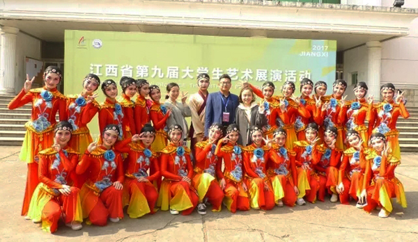 11月8日,江西省第九届大学生艺术展演(该活动三年举办一届)在南昌举行。在学校党政的高度重视下,在校团委、校艺术团的精心组织下,我校3个群舞《我等你》《激楚》《封箱》成功入围,参加全省本科院校甲组比赛。来自南昌大学、江西师范大学等十多所本科院校的28支群舞参加当日比赛,经过激烈的角逐,我校选手脱颖而出,获得了来自省内外舞蹈专家的一致好评。