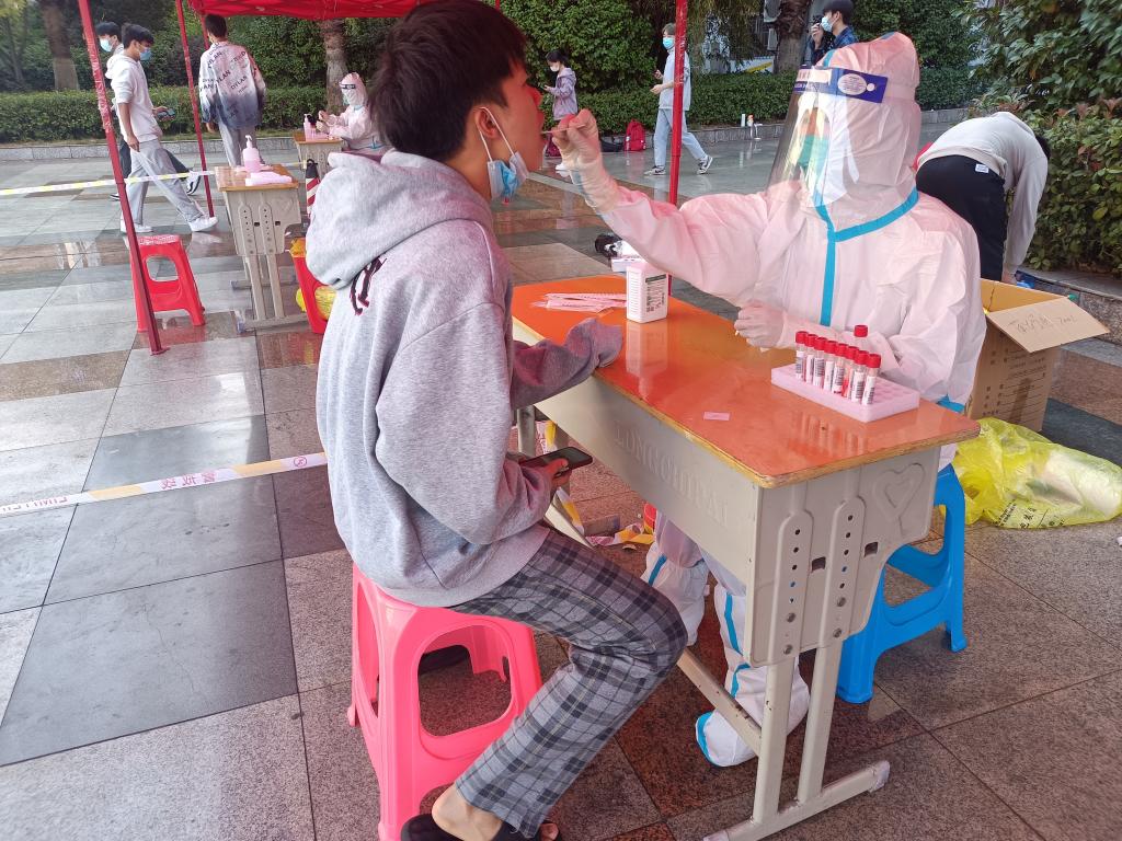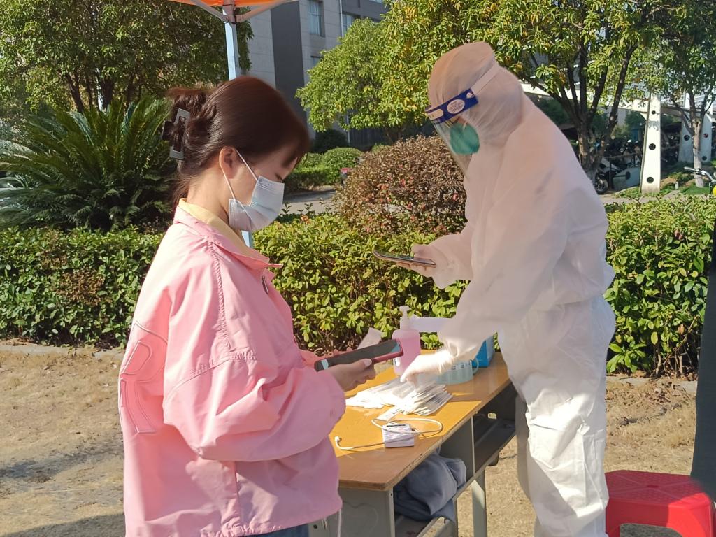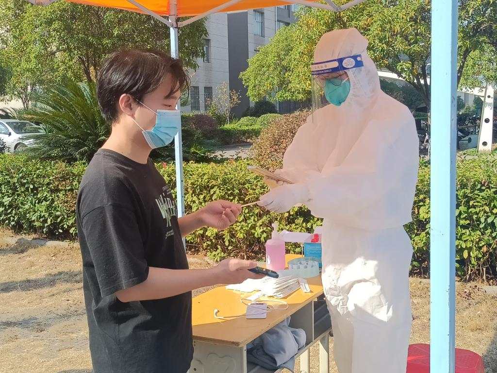 “作为医护人员,身为萍乡人,面对家乡突如其来的疫情,深感使命在肩,我应积极参与防疫工作,为萍乡付出自己的一份绵薄之力。”这是一位刚刚毕业,在安源区妇幼保健院工作不久的“00”后“大白”的心里话。“医疗物资不缺,但都要省着用的。”她说,“萍乡突然出现一个‘小阳人’,支援太突然了,衣服一直穿到现在,没有更换,洗洗之后干了又穿。”“初出茅庐”的她在防疫工作中还是会有小小的担心和焦虑,但她依旧坚定地站在了防疫路上。小城有大爱,萍乡突发疫情,萍乡人民一呼百应,共同抗“疫”,她也信念坚定,满怀责任感和使命感来到我校,帮助我校完成全员核酸采样。“00”后的她由于参加防疫工作,不能回家,生活物资也不是很充裕,但她不怕苦也不怕累。她衷心地说道:“希望大家都注意防护,戴好口罩,保护好自己。”