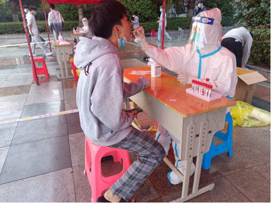 据了解,学校一共有4个核酸检测点,19个核酸检测台,校医务所仅仅只有6个人。而学校的人数却有相当于一个社区的人数之多,达到了12000人。医务人员能做的只有争分夺秒,早起晚睡,在这样大的工作量下,有的医务人员甚至累倒在了岗位上,等到恢复精力后,便又开始了工作。