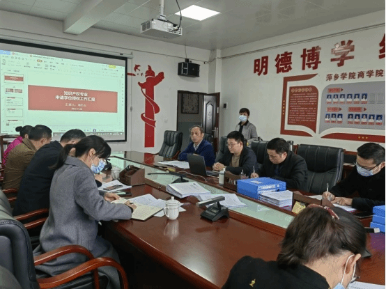 会上,专业汇报人从知识产权专业定位、师资建设、教学资源利用、人才培养方案、教学大纲、质量评估体系等六个方面进行汇报。