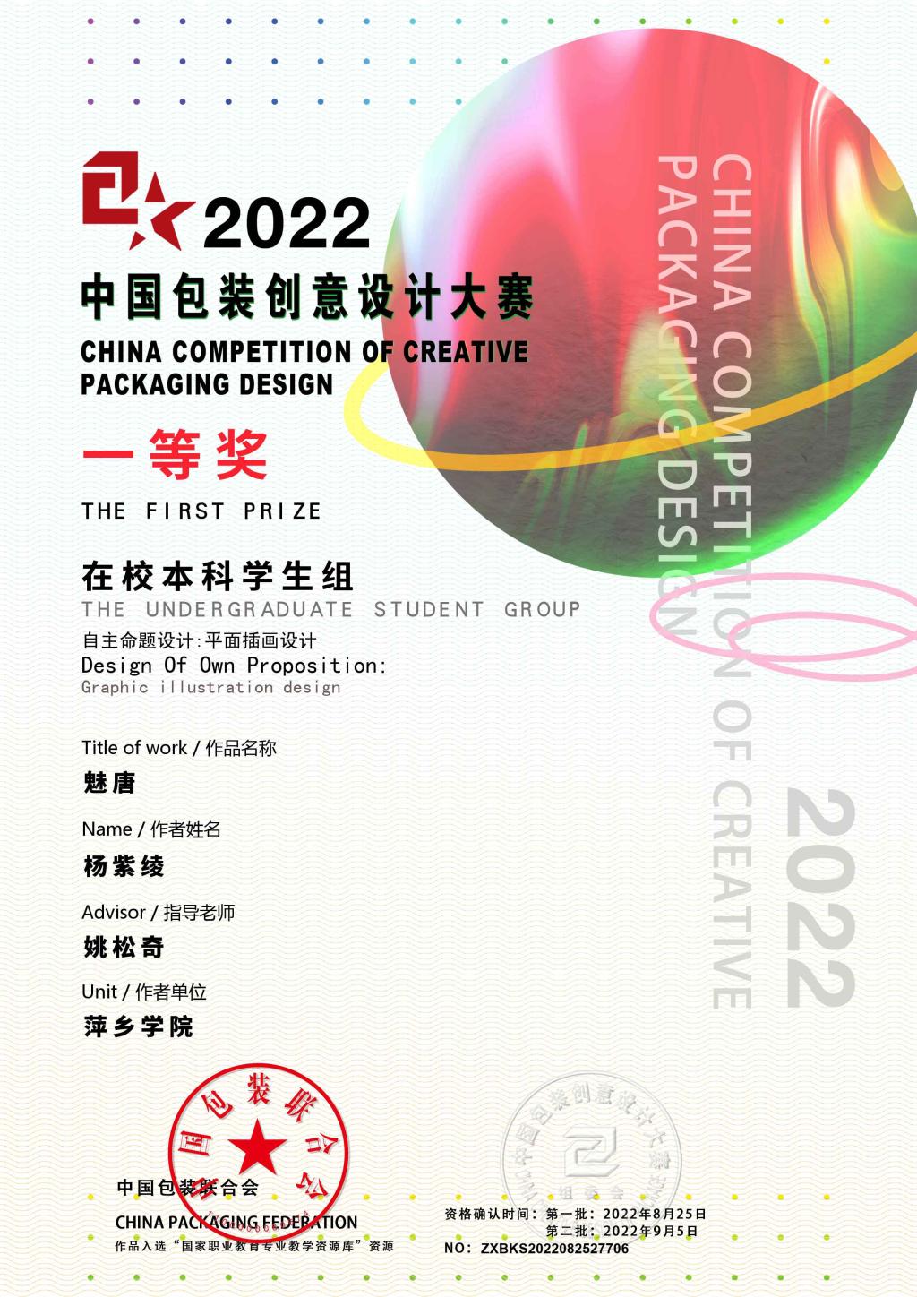 中国包装创意设计大赛是由国家一级行业协会中国包装联合会举办,是中国包装界权威赛事,大赛的优秀作品也是教育部、国家职业教育专业教学资源库建设的重要组成部分,纳入“艺术类竞赛指数的大学生竞赛清单”。