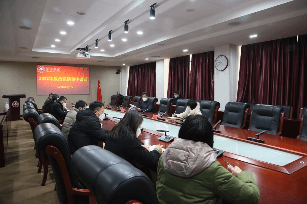 为加强对“一把手”和领导班子的监督,推动落实管党治党主体责任,持续推进全面从严治党向纵深发展,近期,我校组织开展了2022年度政治谈话。校党委书记邱晓辉,校党委副书记、校长史焕平分别与各二级学院党委书记、院长进行集体政治谈话并提出要求。其他校领导作为主谈人按照分工对其他处级干部开展政治谈话。