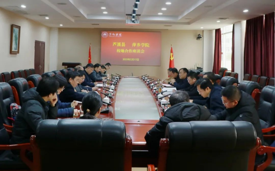 2月17日,学校与芦溪县校地合作座谈会在我校至善楼第一会议室举行。校党委副书记、校长史焕平,副校长吴代赦,芦溪县委副书记、县长龙萍,县领导韩凌飞等出席座谈会。科研处、材化学院、机电学院等部门、二级学院负责人和教师代表参加座谈会。