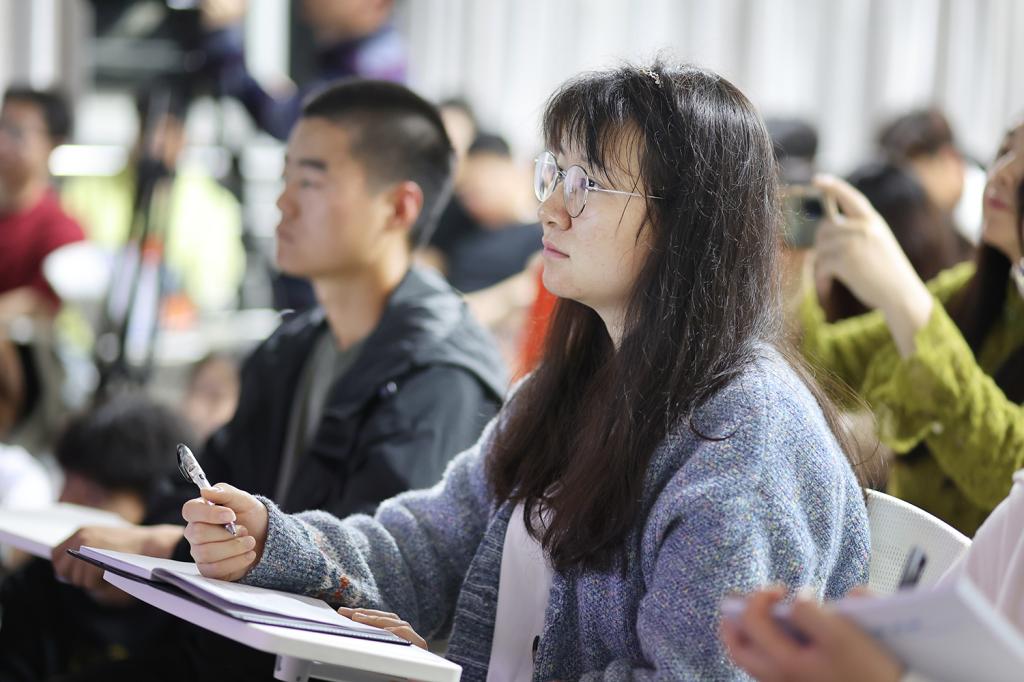 田常红以一首古曲《阳关三叠》开场,通过古琴的发展历史将大家引带入了中华优秀传统文化大观园。她从“文化密码”“中国哲学是生命哲学”两个方面,围绕中华文明的诞生及其源远流长的历史、学校楼宇名称出处和意义、关注成人之道等方面讲述了中华优秀传统文化的美丽所在。她表示,学以成人,应向天地万物、道家儒家学习,不管发生什么都以阳光成长的心态应对,焕发生命的生机与活力。同时,她还为同学们讲授成人之道:可以成长快乐,生机勃勃;可以视物常新,有发现美的眼光;可以与物为春,破除小我,以发展的眼光看待一切,保持赤子之心。