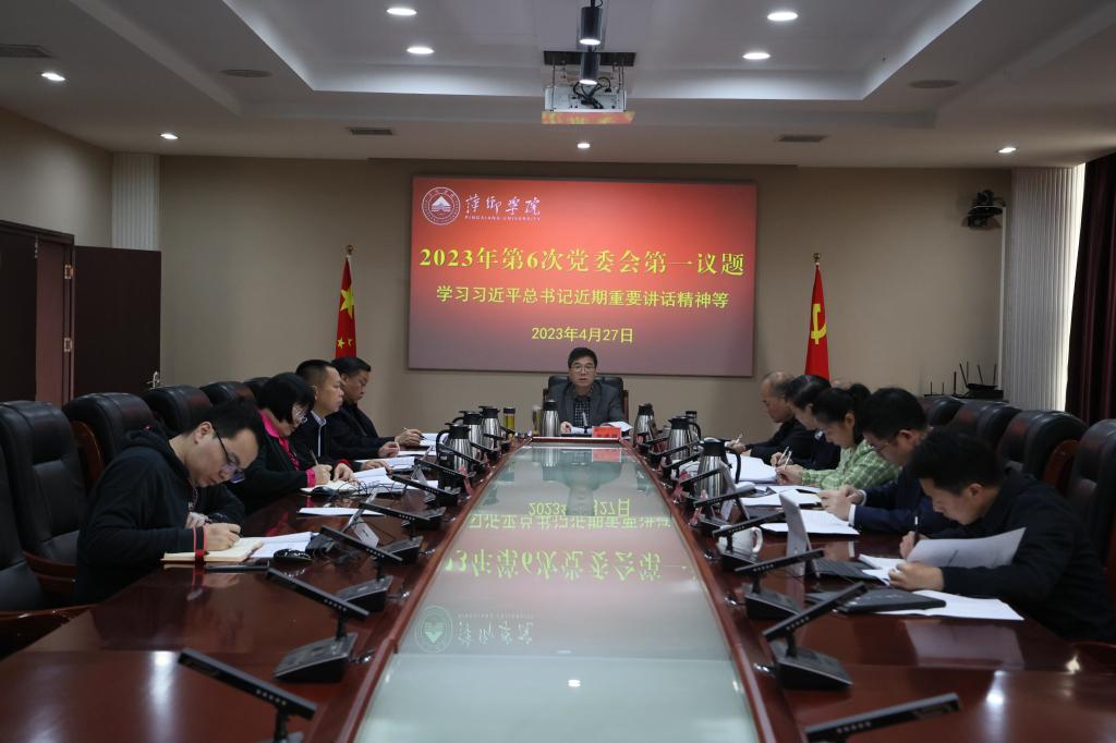 4月27日,校党委在至善楼第一会议室开展党委会“第一议题”政治理论学习,及时学习习近平总书记近期重要讲话、重要论述和发表的重要文章精神。学习会由校党委书记邱晓辉主持,党委委员、副校长陈永国领学相关内容。