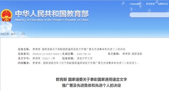 5月10日,国家通用语言文字推广普及工作表彰大会暨2023年国家语委全体委员会议在京召开,这是国家通用语言文字法颁布以来的首次表彰,意义重大,影响深远。由教育部、中宣部、国家民委等9部门组成表彰工作领导小组评选推荐178个先进集体和294名先进个人,其中,江西受表彰先进集体5个,先进个人9名。我校人文与传媒学院教师易缨被评为“国家通用语言文字推广普及先进个人”。
