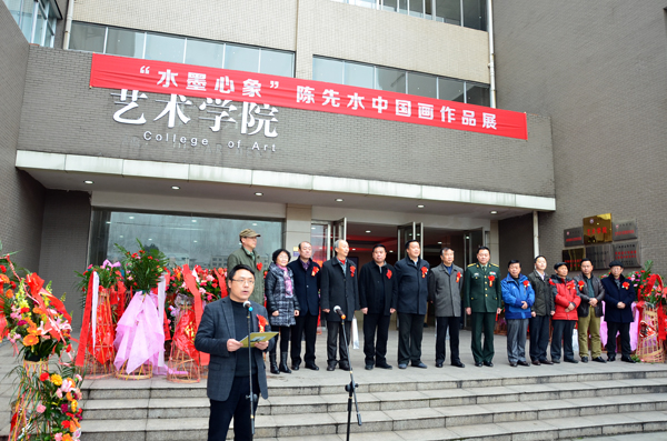 12月29日,军旅画家陈先水先生中国画作品展在我校美术馆举办。上午9:30,开幕式在宜萱楼前举行。市政协副主席谢新明、副院长郭伟、萍乡中煤科技董事长刘建高、萍乡军分区政治部主任龚晓明、后勤部长邱坤清、市委宣传部副部长李晓萍、市文联主席胡冬青、萍乡日报社总编任斌、市残联理事长郝建国、市教育局副局长漆开华、市美协主席甘远龙、市书协主席袁赣忠、宜春市宜阳书画院院长肖洪波、萍乡市侨联主席李小青、著名书法家刘才源出席开幕式,市有关单位、企业的知名人士、艺术爱好者及我校师生代表近200人参加开幕式,开幕式由副院长邱建丁主持。