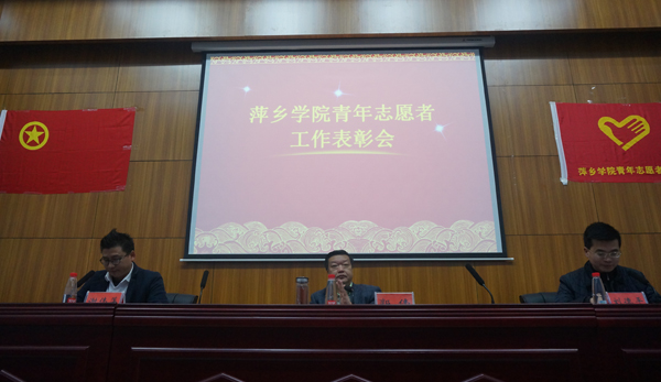 会上,刘德平宣读了《共青团萍乡学院委员会关于表彰优秀志愿服务集体和优秀青年志愿者的决定》。工程与管理学院青协、初等教育学院青协、机械与电子工程学院青协、文学院青协被授予“萍乡学院优秀志愿服务集体”称号,外国语学院青协被授予“萍乡学院志愿服务工作进步奖”。同时授予101名学生为“萍乡学院优秀青年志愿者”称号。
