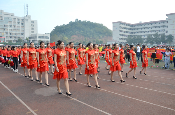 开幕式上,各二级学院学生代表队依次进行的大型团体操表演将开幕式推向了高潮。他们用激情奔放的动作、变幻多样的舞姿为广大师生奉献了一场精彩的视觉盛宴,获得了观众雷鸣般的掌声。