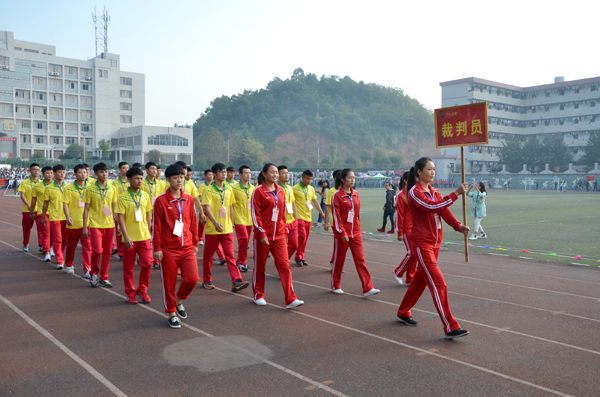院长范小林隆重宣布萍乡学院第三届田径运动会开幕。裁判员代表、运动员代表依次宣誓。