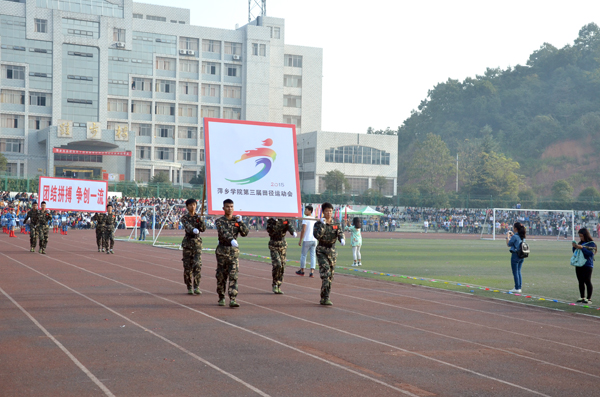 伴随着激昂的运动员进行曲,庄严的国旗队首先进场,学校的校旗、会徽以及鼓乐队、彩旗队紧随其后。各二级学院的运动员代表方阵和教工代表方队依次步入会场,用各自特有的方式展示了萍院人蓬勃向上的青春活力。