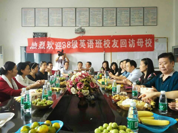 金秋十月,国庆佳节,丹桂飘香,我校90届英语班、98届财会1班、05届工造班、05届生化班等毕业班不约而同回到母校,举办毕业聚会活动。副院长郭伟、宣传部部长陈永国等校领导,相关二级学院、部门负责人,部分在职教师及退休教师应邀参加活动。