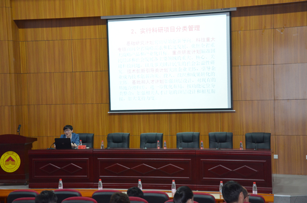 会议邀请了省科技厅发展计划处副处长沈卫作题为“科技计划管理改革和2016年科技项目申报”的专题报告。沈卫从当前科技管理中的问题和挑战、当前国家财政科技投入结构、江西省人民政府关于改进加强省级财政科研项目和资金管理的实施意见等方面深入分析了科技计划管理改革;从国家自然科学基金项目研究的意义、摘要的撰写、立论依据、研究目标及方案、项目组成员、申请书的写作等方面对国家项目的申报作了宏观的论述与微观的讲解。报告使我校教师对国家项目的申报与研究有了更全面、更深层次的了解,对下一步申报项目具有重要的指导意义。