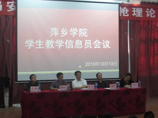 会上,易志文总结了上学年教学信息员工作,简单介绍了学生信息员的工作职责和工作流程。针对2015级新生教学信息员对教学信息收集和反馈还不熟悉,会后各二级学院应组织召开教学信息员会议,认真学习《萍乡学院学生教学信息员管理办法》及有关工作要求。