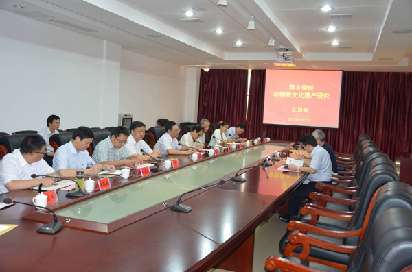 随后,艺术学院负责人陈锋介绍了“非物质文化遗产研究中心”的情况,并从五个方面作了详细汇报。一、建设非遗研究中心研究方向、特色和意义。二、建设非遗研究中心的必要性、可行性分析。三、非遗研究中心主要研究内容。四、非遗研究中心的建设基础。五、非遗研究中心五年建设计划。