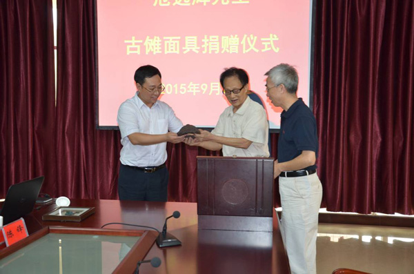 座谈会上还举行了捐赠仪式。危远辉先生将个人收藏的珍贵文物——一副古傩面具和一套具有重要参考价值的傩面具图谱捐赠给我校。这些文物将进一步促进研究中心的发展。