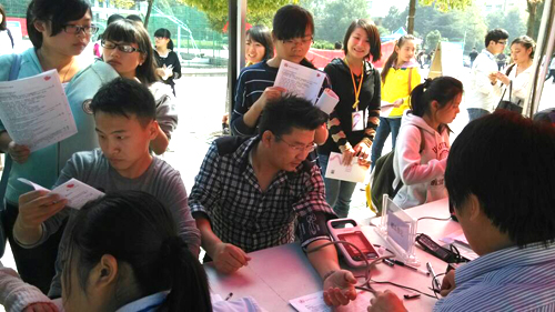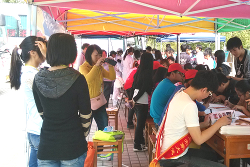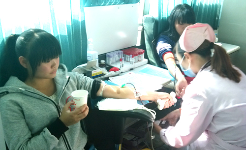 11月6日至8日,在校团委的统一安排下,校青年志愿者协会与萍乡市中心血站联合开展了“关爱生命、情满校园”无偿献血活动。广大师生纷纷来到活动点踊跃献血、奉献爱心,现场排起了长队,气氛非常火热。据统计,我校共有454名志愿者参与了此次献血活动,共计无偿献血141600毫升。 无偿献血是一种爱心奉献,是社会文明进步的标志,充分体现了“奉献、友爱、互助、进步”的志愿精神。校团委每上、下半年各举行一次无偿献血活动,近三年来,共组织2000多人次志愿者,无偿献血50多万毫升,相当于120个正常人血液量的总和,连续三届被评为“全省无偿献血促进奖”。 11月6日一大早,萍乡市中心血站的大巴就装载着献血的仪器和10多名工作人员来到学校。很多志愿者围在报名处咨询献血的具体事宜。据萍乡市中心血站的工作人员介绍,前来咨询的志愿者最关心的问题是自己目前的情况能否献血。为了带动全校志愿者的献血热情和积极性,校团委负责老师以身为范,带头献血。志愿者们的献血热情变得更加高涨,献血的志愿者络绎不绝,他们纷纷挽起衣袖,献出自己的爱心。 接受采访的献血者在被询问为什么要参加无偿献血活动的时候,很平淡地回答道:“没有什么特别的目的,我身边的朋友也都在献血,既对自己的身体有好处,又能挽救他人的生命,何乐而不为呢?”
