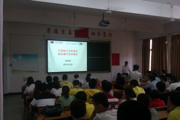 6月20日下午,刘明初校长来到英华楼为体育系和中文系全体党员及入党积极分子作题为《牢固树立党章意识,模范遵守党章规定》的专题讲座。