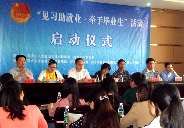 为拓宽高校毕业生就业渠道,缓解高校毕业生就业压力,5月19日上午,由市人力资源和社会保障局、共青团萍乡市委主办,萍乡学院团委等单位承办的“见习助就业,牵手毕业生”活动启动仪式在校鼎新楼2403举行。市人力资源和社会保障局局长周小燕,团市委书记何超,校党委委员、副校长刘卫林,团市委副书记汤艳红,市人力资源和社会保障局副局长陈柏林,市劳动就业服务管理局局长闵绍荣,萍乡电视台台长欧东兵出席启动仪式。11家企业负责人、校团委书记、副书记、校团属有关学生干部及各系部团总支副书记参加了活动。