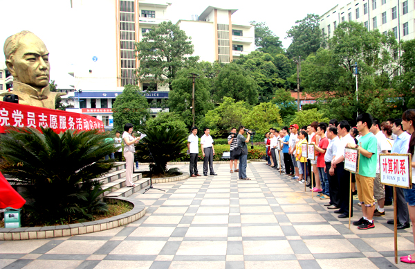 据悉,我校党员志愿服务队将到基层为学校、社区提供志愿服务活动,为师生和人民群众之间架起一座沟通的桥梁。(罗燕妮/文 黎嵩山/摄)
