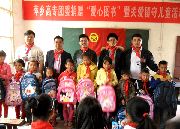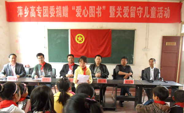 一本图书,满载的是希望;一声问候,饱含的是温暖。4月19日下午,在保卫处处长肖国正、校团委书记刘德平的带领下,校团委学生干部带着全校团员青年对农村留守儿童的关爱赴湘东区荷尧镇青云小学开展捐赠“爱心图书”暨关爱留守儿童活动。荷尧镇副镇长李昱、青云村村委主任昌国强,青云小学刘水明校长以及学校相关领导出席捐赠仪式。