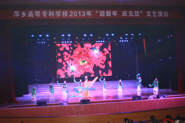 我校2013年“迎新年、庆元旦”文艺晚会12月27日下午4点在宜萱楼音乐厅隆重举行。在家校领导,有关兄弟院校领导,萍乡安源区、经济技术开发区相关单位领导出席晚会,与我校近1000名师生代表一同观看演出,喜迎2013年的到来。