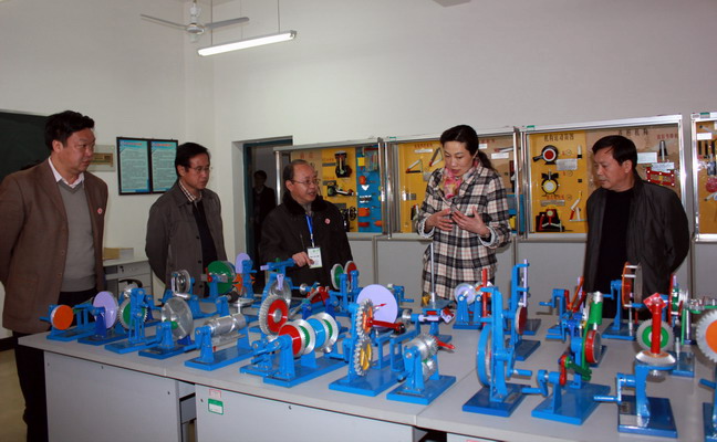 江枝英一行首先实地踏看了学校东校区建设工地、机电系实验室、材料与化学工程系实验室、工程训练中心、材料实训中心等地。随后,在我校鼎新楼2301会议室召开党建工作汇报会。校领导尹继国、刘明初、郭伟、邱建丁、潘运华、彭检明、田常红、陈永秀、陈永国以及相关部门负责人参加了汇报会。