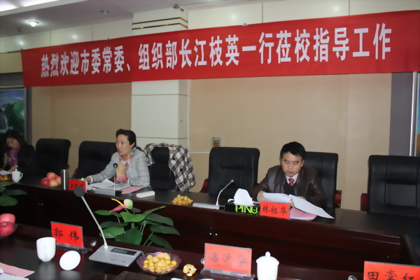 11月29日下午,市委常委、组织部长江枝英一行三人莅临我校调研党建工作。校党委书记尹继国、校长刘明初等领导陪同。