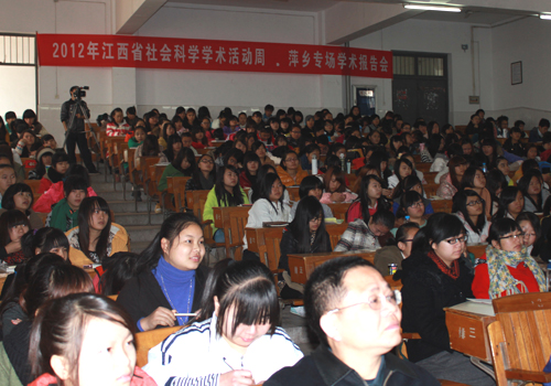 12月4日上午,江西省社会科学学术活动周·萍乡高专学术报告会在我校跬步楼1101教室举行。省社联赵华伟,市社联副主席叶良继、我校艺术系副主任康华教授、经管系副主任彭香萍教授、宣传统战部副部长王林清以及艺术系全体师生和萍乡各界爱好音乐的同志一同参加了报告会。
