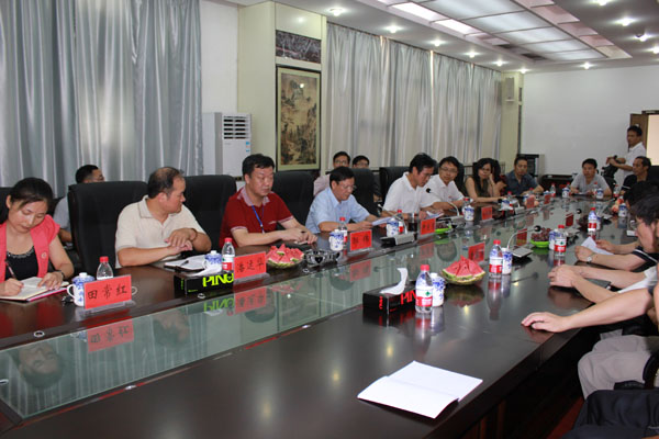 在鼎新楼2201会议室举行的座谈汇报会上,彭苏萍听取了校长刘明初的升本工作情况汇报,并与校领导亲切座谈。