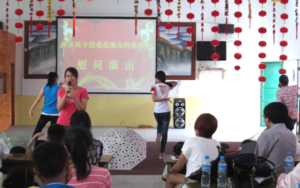 在第二十二个全国助残日来临之际,为呼唤同学们的奉献意识,将爱心进行传递,5月17日下午,校团委组织学生干部赴湘东特殊教育学校开展慰问演出活动,并送上慰问品和慰问金,表达对残障儿童的关爱之情。
