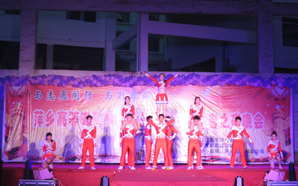 整场晚会志愿者们倾情演绎,过程高潮迭起。体育系以时尚动感、活力四射的啦啦操拉开了晚会的帷幕,并迅速点燃了现场观众的热情。随后,十一个内容丰富、形式多样的节目不断引爆全场气氛,将晚会推向一个个高潮。高亢激昂的歌曲《祖国万岁》表达了高专学子对祖国母亲美好的祝福;小品《我为升本做贡献》和朗诵《萍乡学院,我们共同的期盼》用铿锵有力的语言抒发了187万萍乡儿女热切期盼萍乡学院早日申办成功的心愿,成为本次晚会的一大亮点。街舞、藏舞《姑娘走过的地方》各具特色的舞蹈节目以或是优雅、或是激昂的舞姿,使师生们领略到了舞蹈艺术的魅力;歌曲《人间》歌声动听给人以听觉的享受;情景剧《志愿者老师》,让我们感受到志愿者无私奉献,撒播爱心种子的温馨氛围;环保走秀中一套套独具时尚元素的环保时装冲击着观众的视觉,以此大力宣传环保理念。此外,小品《随音乐舞动的理发师》、书画展等精彩节目不时赢得在场师生的阵阵热烈掌声。最后,晚会在富有青春的歌舞《飞得更高》中圆满地落下帷幕。