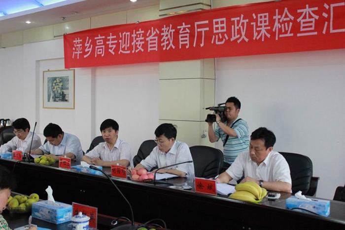 6月16日上午,由省教育厅社政处副处长罗红卫任组长,南昌大学马克思主义学院院长、博士生导师胡伯项,赣南师范学院马克思主义学院院长兼书记张文标,江西教育学院社科部主任徐斌,江西师范大学马克思主义学院副院长王员为成员的省教育厅思想政治理论课督查组莅临我校检查指导工作。党委书记尹继国,党委副书记、副校长郭伟,党委委员、宣传统战部部长陈永国出席汇报会;教务处处长易逢荣,思政部副主任朱红英、副书记叶继林参加了汇报会。汇报会由郭伟主持。