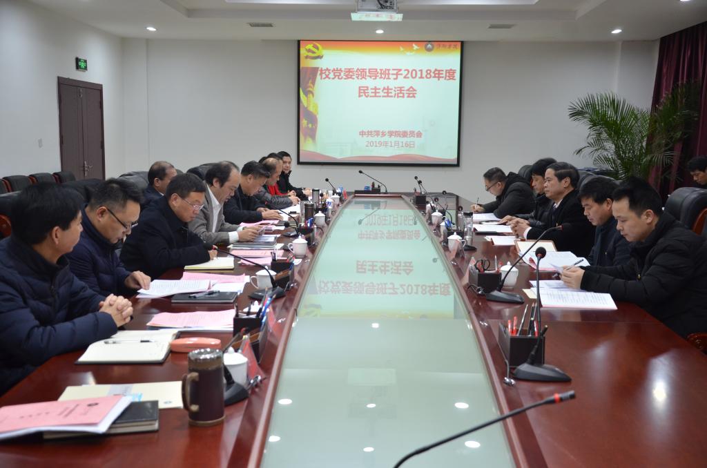 1月16日,我校在至善楼第一会议室召开2018年度党委领导班子民主生活会。省委督导组组长、九江职业技术学院党委副书记、院长曾青生同志,萍乡市纪委副书记、市监察委员会副主任贺雪平同志,江西干部学院副院长黄书华同志,萍乡市委组织部调研科科长甘海金同志,萍乡市纪委监委第二监督室干部巫江同志莅会指导,会议由党委书记陈金印主持,全体党委班子成员参加,纪委、党政办公室、组织部等部门负责同志及部分基层党总支书记代表、党员代表列席。