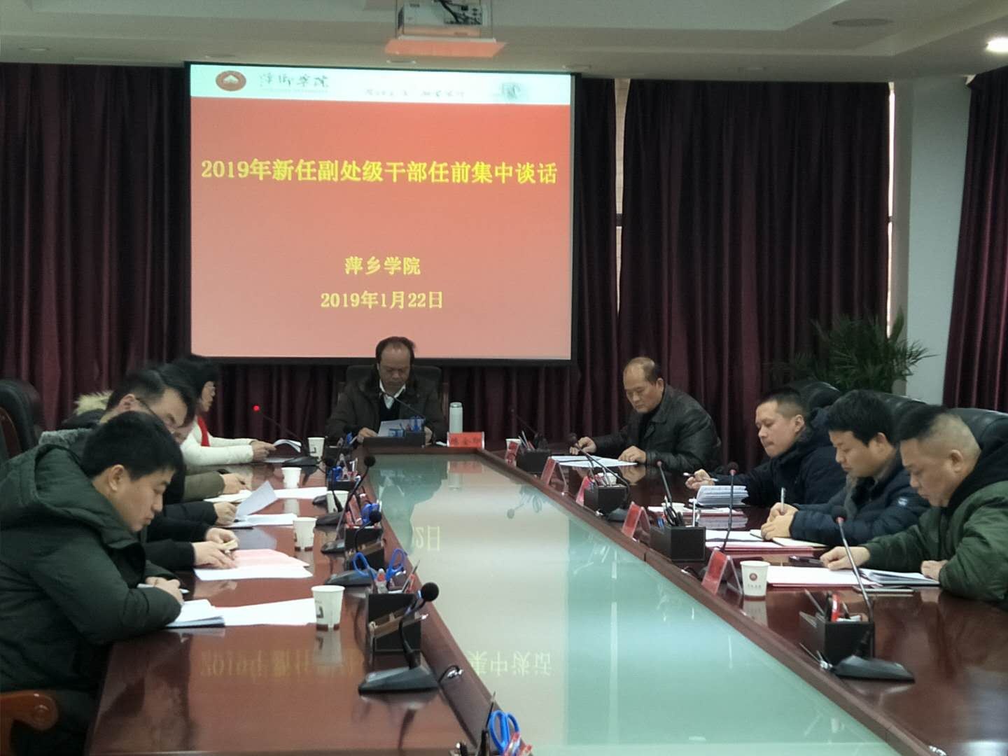 1月22日下午,我校在至善楼第二会议室组织召开副处级干部选拔任用任职前集体谈话。党委书记陈金印,党委委员、纪委书记潘运华,党委委员、组织部部长陈永秀以及2018年第二批新提任的7名副处级干部参加。会议由陈永秀主持并宣布了新提任副处级的任职。会前,还组织了新提任的7名副处级干部进行廉政知识测试。