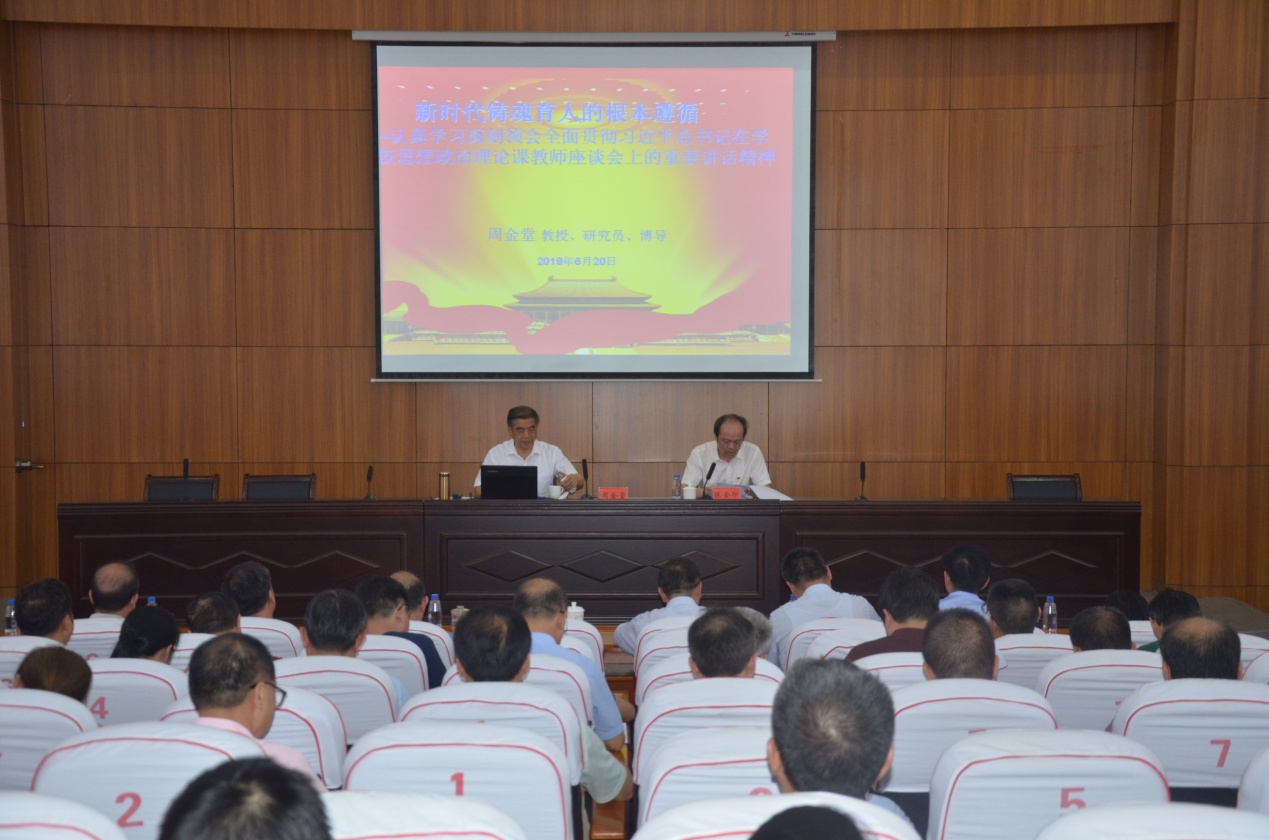 下午2:30,陈金印来到学术报告厅与全校中层干部、思政理论课教师一起听取了《认真学习、深刻领会、全面贯彻习近平总书记在学校思想政治理论课教师座谈会上的重要讲话精神,切实办好思想政治理论课》的专题讲座。此次讲座是根据江西省委教育工委、江西省教育厅联合下发《关于组织开展全省高校“十百千宣讲团”宣讲活动的通知》文件要求组织的宣讲活动。学校邀请了江西省高校“十百千宣讲团”宣讲成员,江西省高校思想政治理论课教学指导委员会主任委员,南昌职业大学校长周金堂教授为学校中层以上干部及思政课老师授课。周金堂教授从习近平总书记召开的思想政治理论课教师座谈会重要意义及时代价值,习近平总书记重要讲话的主要内容和精神实质,如何深入贯彻落实习近平总书记重要讲话精神,切实办好思想政治理论课等三个方面作了详细讲解。陈金印在讲座总结时指出,周教授的整个辅导报告既有宏观阐述、又有微观分析,既有历史回顾、又有现实展望,对我校党员干部深入学习领会习近平总书记在学校思想政治理论课教师座谈会上的重要讲话精神具有极大帮助。