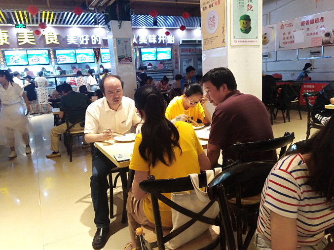中午12:00,陈金印来到了学生第一食堂,与学生一起用餐。陈金印和同学们进行了亲切交谈,仔细询问了菜价是否合理、饭菜是否可口、卫生是否达标等问题,并认真听取同学们对食堂服务的意见。同学们纷纷表示,食堂的整体用餐环境良好,菜价较为合理,品种较为齐全,口味也较为满意。陈金印要求食堂工作人员精益求精,继续提高服务品质,满足广大师生的就餐需求,提升师生的幸福感。
