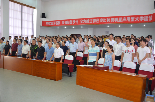 7月1日下午,我校在至善楼学术报告厅举行纪念建党98周年暨总结表彰大会。党委书记陈金印及全体在家校领导出席大会。各党总支书记和专职副书记、党支部书记、优秀党员和新党员代表共计200余人参加大会。党委副书记、校长史焕平主持会议。
