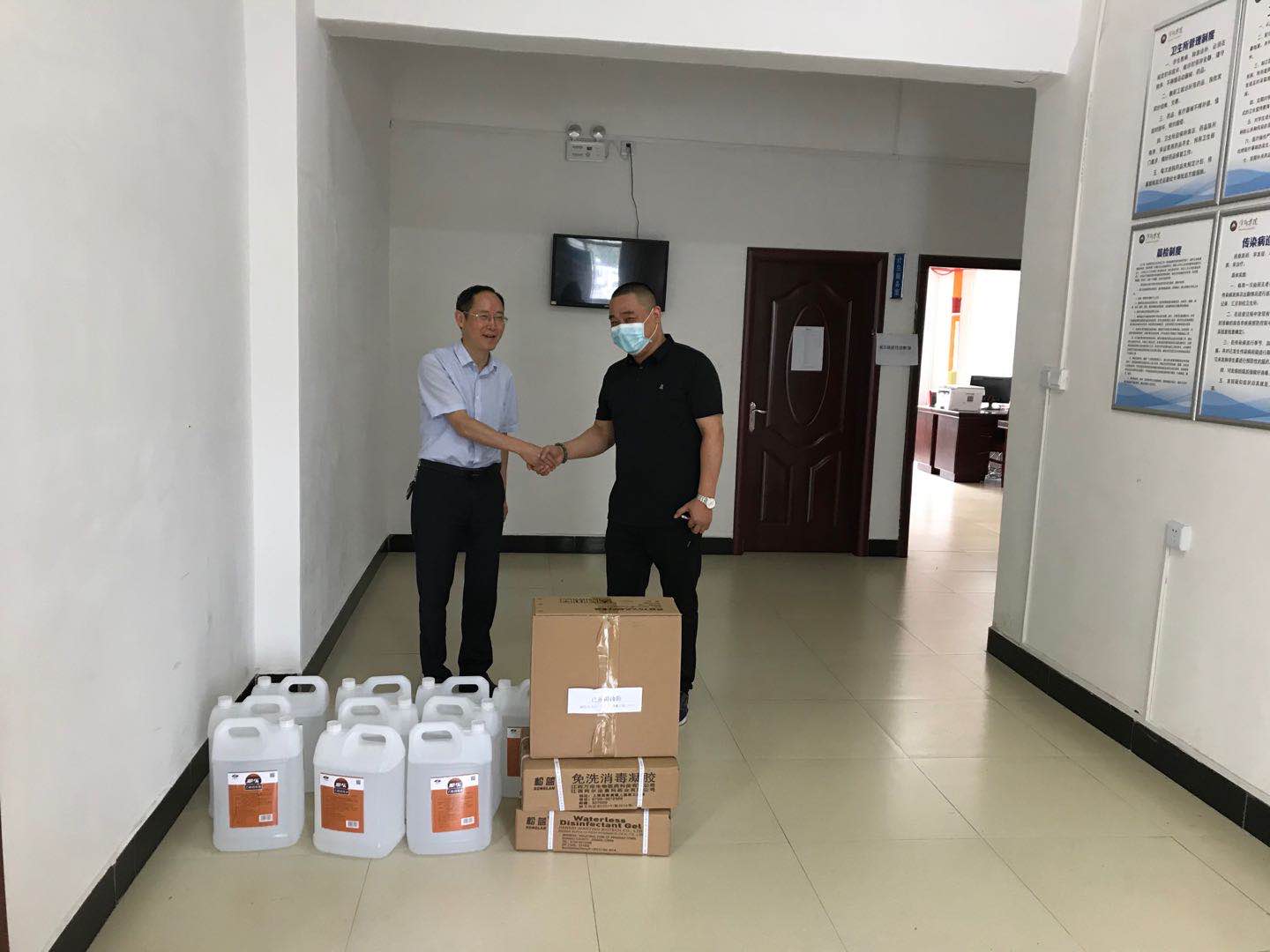 6月1日,萍乡市医药公司向我校捐赠乙醇消毒液10桶、100瓶,免洗消毒凝胶200瓶等爱心防控物资,疫情防控领导小组办公室主任叶国许出席了捐赠仪式。