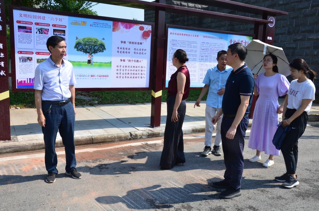 8月17日,市政府副秘书长邓霜丰来到我校督导文明创建工作。校党委委员、副校长刘卫林,党委委员、宣传部部长陈永国陪同督导。