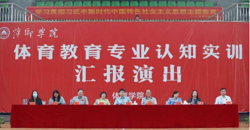 为深入学习贯彻习近平新时代中国特色社会主义思想,以“理论之桨”助推“实践之舵”,有效提升体育师范专业学生对教师岗位的认知度,切实解决学生培养中“适应性和针对性不强”的突出问题,6月6日下午,我校体育学院2020级体育教育专业认知实训总结暨成果汇报演出在体育学院篮球馆举行,体育学院600余名师生参加此次活动。校长刘林芽,党委委员、纪委书记潘运华,党委委员、组织部部长陈永秀,教务处处长贺晓梅莅临现场指导。