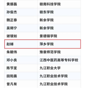 赵娣,男,入党积极分子,萍乡学院青年志愿者协会外联部副部长、材化学院副院长秘书助理,在校期间组织并参加志愿服务在校期间40余场,累计志愿服务时长400小时。赵娣思想积极,成绩优异,荣获校一等奖学金、“翼展计划”荣誉证书、优秀共青团员、优秀学生干部、优秀共青团干部等多项优秀荣誉。