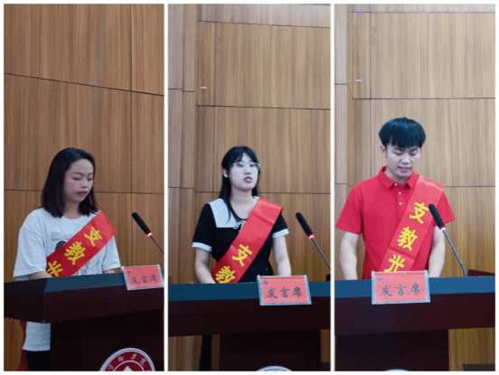 仪式上,支教志愿者代表吴茜、罗佩君、林欣怡上台作表态性发言,他们表示将肩负使命、牢记嘱托、不负期望,以坚定的信念直面困难与挑战,运用自己的专业知识与技能,为乡村教育事业贡献志愿力量,为此次支教任务交上满意的答卷。
