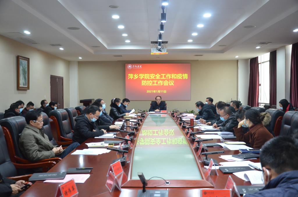 1月11日上午,我校在至善楼第一会议室召开安全工作会议和疫情防控工作会议。就具体落实1月6日省教育厅召开的全省学校安全稳定工作视频会议精神和省疫情防控指挥部第20号、21号、22号令精神进行再动员再部署。校党委书记陈金印,副校长郭伟、刘卫林,党委委员田常红、党委委员、组织部长陈永秀出席会议,各部门负责人、各二级学院党总支书记、物业公司负责人等参加会议。会议由刘卫林主持。