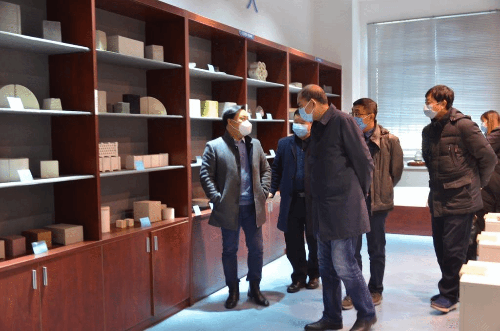 机电学院、材化学院负责人向陈金桥一行介绍了我校机械矿山重点实验室、院士工作站、江西省工业陶瓷重点实验室、江西省环保材料与装备工程技术中心等科研创新平台。陈金桥与相关负责人进行了亲切交流,并给予了工作指导。