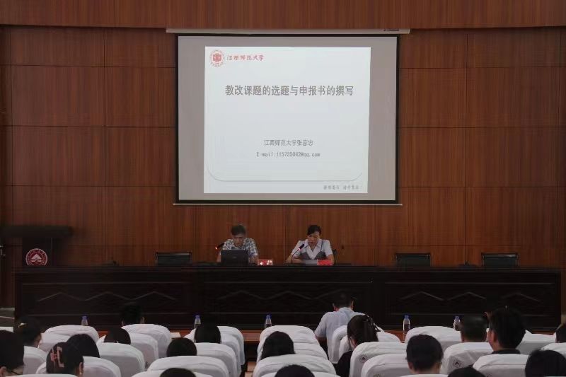 9月26日下午,江西师范大学张意忠教授应邀莅临我校,在至善楼学术报告厅开展主题为“教改课题的申报与撰写”的讲座。学校教师百余人参加讲座。讲座由贺晓梅主持。