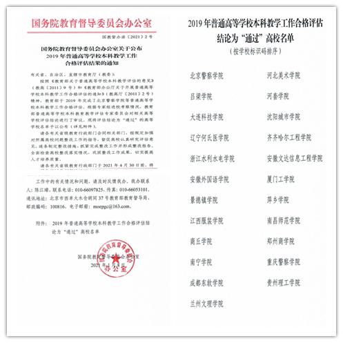 近日,国务院教育督导委员会办公室正式发布了《国务院教育督导委员会办公室关于公布2019年普通高等学校本科教学工作合格评估结果的通知》(国教督办函〔2021〕2号),我校顺利通过教育部本科教学工作合格评估,标志着学校发展迈向了新台阶、开启了新征程。